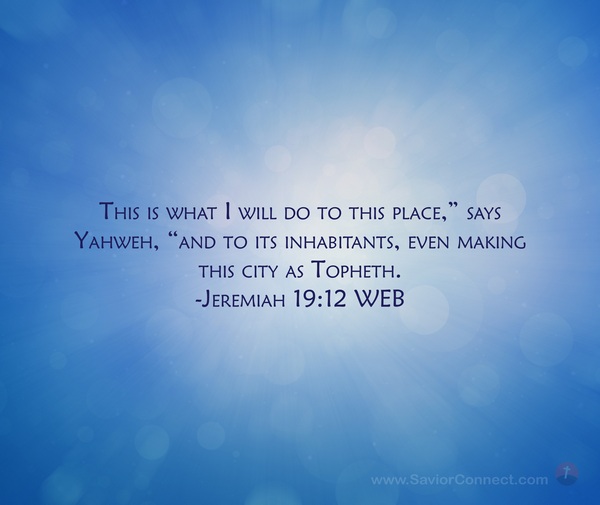 This is what I will do to this place,” says Yahweh, “and to its inhabitants, even making this city as Topheth. -Jeremiah 19:12 WEB
