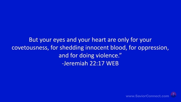But your eyes and your heart are only for your covetousness, for shedding innocent blood, for oppression, and for doing violence.” -Jeremiah 22:17 WEB