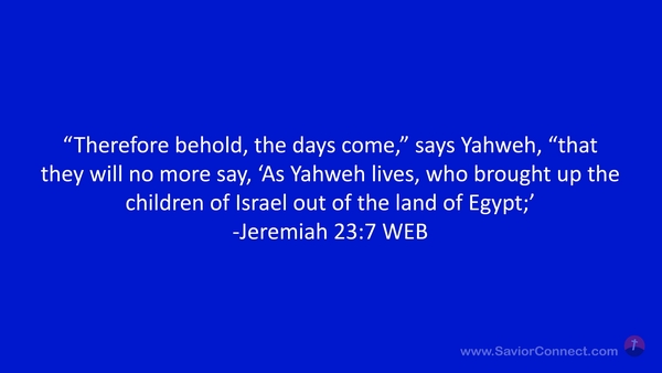 “Therefore behold, the days come,” says Yahweh, “that they will no more say, 'As Yahweh lives, who brought up the children of Israel out of the land of Egypt;’ -Jeremiah 23:7 WEB
