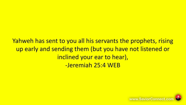 Yahweh has sent to you all his servants the prophets, rising up early and sending them (but you have not listened or inclined your ear to hear), -Jeremiah 25:4 WEB