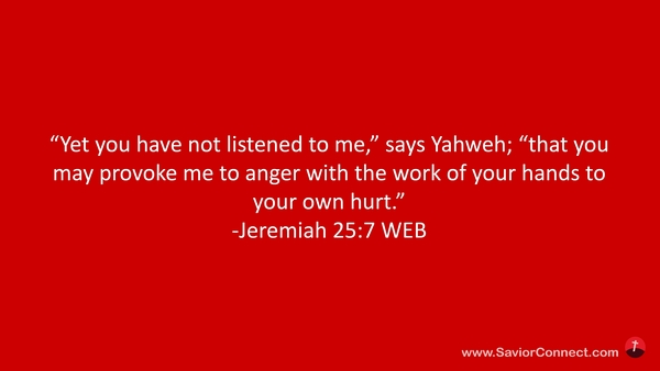 “Yet you have not listened to me,” says Yahweh; “that you may provoke me to anger with the work of your hands to your own hurt.” -Jeremiah 25:7 WEB
