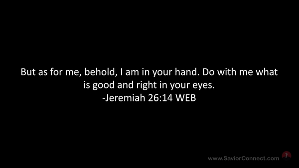 But as for me, behold, I am in your hand. Do with me what is good and right in your eyes. -Jeremiah 26:14 WEB