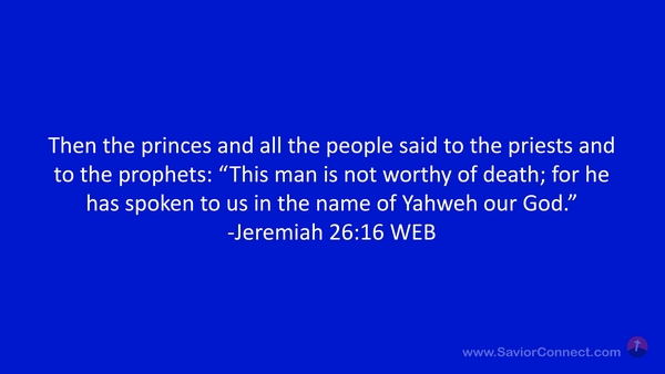 Then the princes and all the people said to the priests and to the prophets: “This man is not worthy of death; for he has spoken to us in the name of Yahweh our God.” -Jeremiah 26:16 WEB