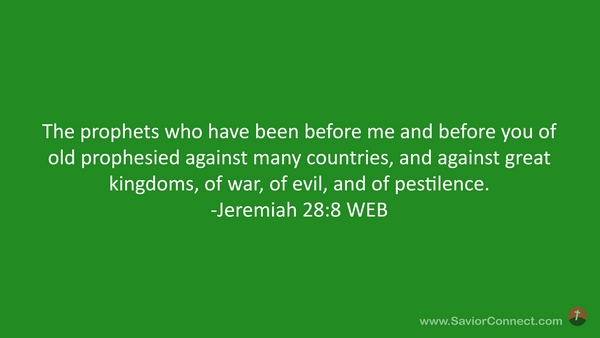 The prophets who have been before me and before you of old prophesied against many countries, and against great kingdoms, of war, of evil, and of pestilence. -Jeremiah 28:8 WEB
