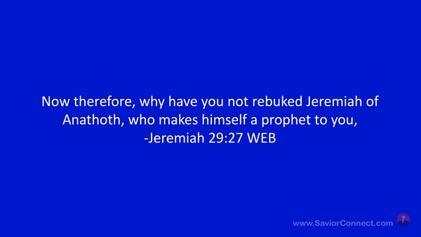Now therefore, why have you not rebuked Jeremiah of Anathoth, who makes himself a prophet to you, -Jeremiah 29:27 WEB