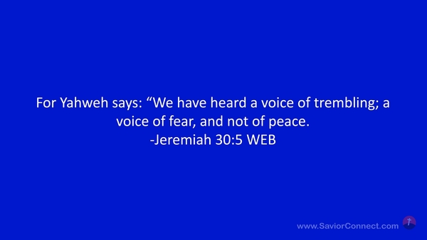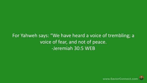 For Yahweh says: “We have heard a voice of trembling; a voice of fear, and not of peace. -Jeremiah 30:5 WEB