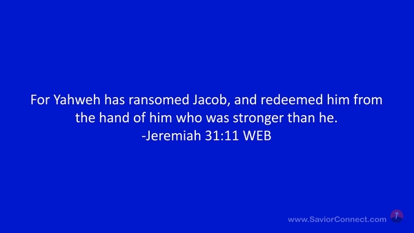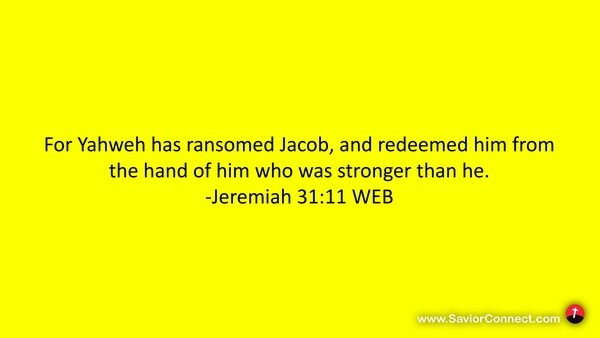 For Yahweh has ransomed Jacob, and redeemed him from the hand of him who was stronger than he. -Jeremiah 31:11 WEB