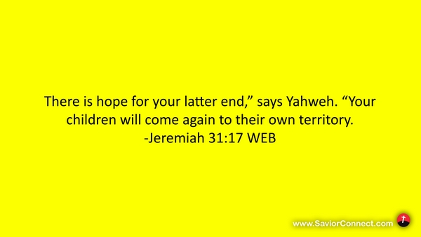 There is hope for your latter end,” says Yahweh. “Your children will come again to their own territory. -Jeremiah 31:17 WEB