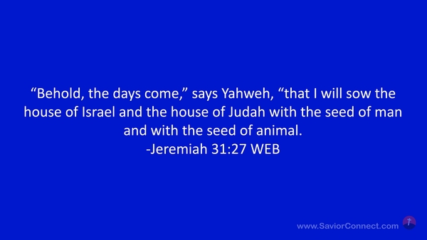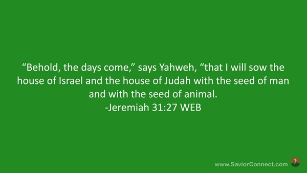 “Behold, the days come,” says Yahweh, “that I will sow the house of Israel and the house of Judah with the seed of man and with the seed of animal. -Jeremiah 31:27 WEB