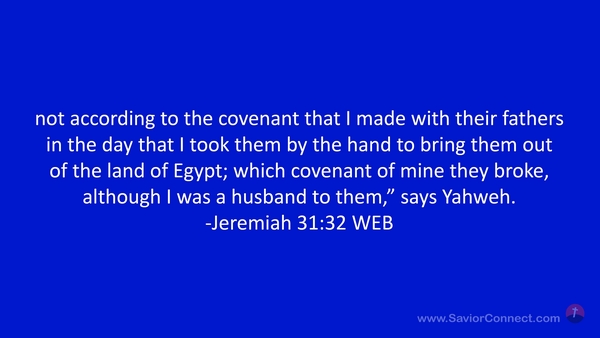 not according to the covenant that I made with their fathers in the day that I took them by the hand to bring them out of the land of Egypt; which covenant of mine they broke, although I was a husband to them,” says Yahweh. -Jeremiah 31:32 WEB