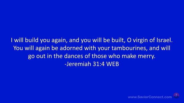 I will build you again, and you will be built, O virgin of Israel. You will again be adorned with your tambourines, and will go out in the dances of those who make merry. -Jeremiah 31:4 WEB