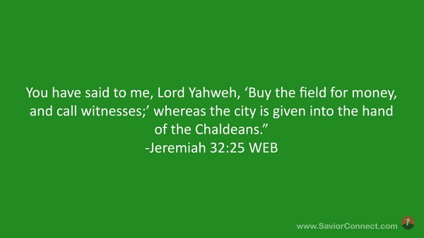 You have said to me, Lord Yahweh, 'Buy the field for money, and call witnesses;’ whereas the city is given into the hand of the Chaldeans.” -Jeremiah 32:25 WEB