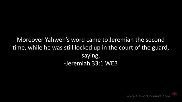 Moreover Yahweh’s word came to Jeremiah the second time, while he was still locked up in the court of the guard, saying, -Jeremiah 33:1 WEB