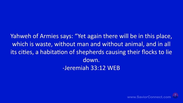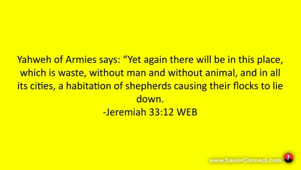 Yahweh of Armies says: “Yet again there will be in this place, which is waste, without man and without animal, and in all its cities, a habitation of shepherds causing their flocks to lie down. -Jeremiah 33:12 WEB