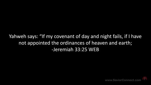 Yahweh says: “If my covenant of day and night fails, if I have not appointed the ordinances of heaven and earth; -Jeremiah 33:25 WEB