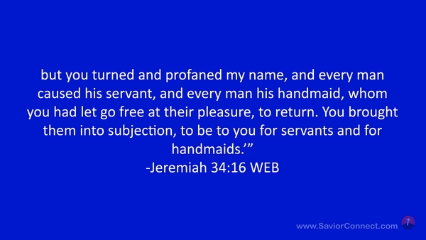 but you turned and profaned my name, and every man caused his servant, and every man his handmaid, whom you had let go free at their pleasure, to return. You brought them into subjection, to be to you for servants and for handmaids.’” -Jeremiah 34:16 WEB