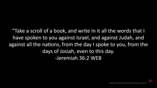 “Take a scroll of a book, and write in it all the words that I have spoken to you against Israel, and against Judah, and against all the nations, from the day I spoke to you, from the days of Josiah, even to this day. -Jeremiah 36:2 WEB
