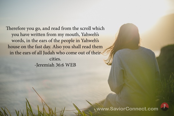 Therefore you go, and read from the scroll which you have written from my mouth, Yahweh’s words, in the ears of the people in Yahweh’s house on the fast day. Also you shall read them in the ears of all Judah who come out of their cities. -Jeremiah 36:6 WEB
