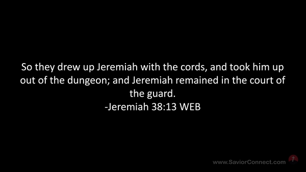 So they drew up Jeremiah with the cords, and took him up out of the dungeon; and Jeremiah remained in the court of the guard. -Jeremiah 38:13 WEB