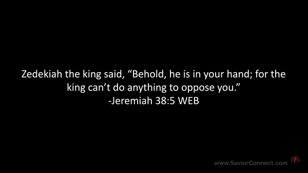 Zedekiah the king said, “Behold, he is in your hand; for the king can’t do anything to oppose you.” -Jeremiah 38:5 WEB