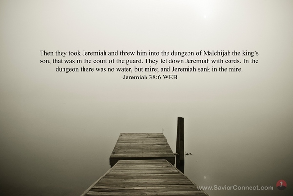 Then they took Jeremiah and threw him into the dungeon of Malchijah the king’s son, that was in the court of the guard. They let down Jeremiah with cords. In the dungeon there was no water, but mire; and Jeremiah sank in the mire. -Jeremiah 38:6 WEB