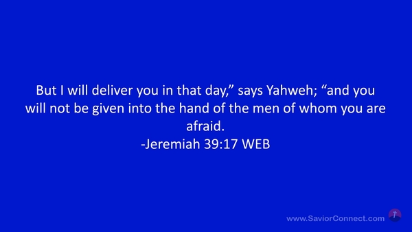 But I will deliver you in that day,” says Yahweh; “and you will not be given into the hand of the men of whom you are afraid. -Jeremiah 39:17 WEB