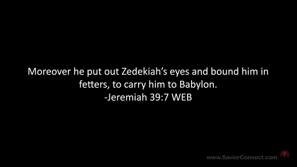 Moreover he put out Zedekiah’s eyes and bound him in fetters, to carry him to Babylon. -Jeremiah 39:7 WEB