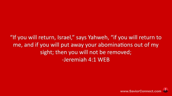 “If you will return, Israel,” says Yahweh, “if you will return to me, and if you will put away your abominations out of my sight; then you will not be removed; -Jeremiah 4:1 WEB