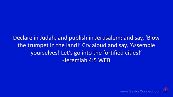 Declare in Judah, and publish in Jerusalem; and say, 'Blow the trumpet in the land!’ Cry aloud and say, 'Assemble yourselves! Let’s go into the fortified cities!’ -Jeremiah 4:5 WEB