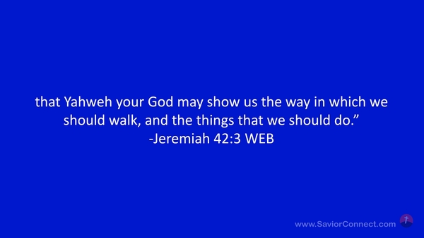 that Yahweh your God may show us the way in which we should walk, and the things that we should do.” -Jeremiah 42:3 WEB