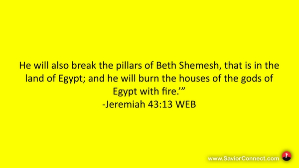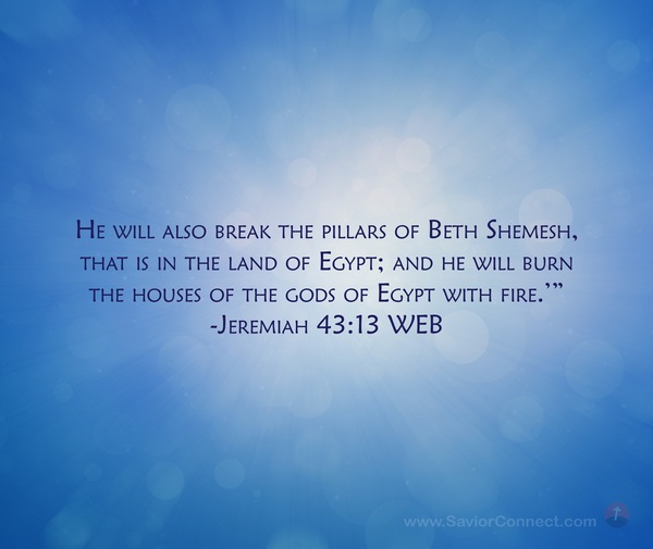 He will also break the pillars of Beth Shemesh, that is in the land of Egypt; and he will burn the houses of the gods of Egypt with fire.’” -Jeremiah 43:13 WEB