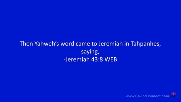 Then Yahweh’s word came to Jeremiah in Tahpanhes, saying, -Jeremiah 43:8 WEB