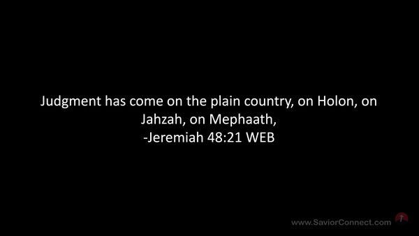 Judgment has come on the plain country, on Holon, on Jahzah, on Mephaath, -Jeremiah 48:21 WEB