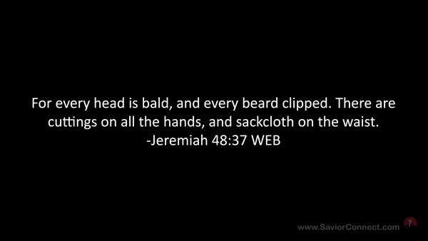 For every head is bald, and every beard clipped. There are cuttings on all the hands, and sackcloth on the waist. -Jeremiah 48:37 WEB