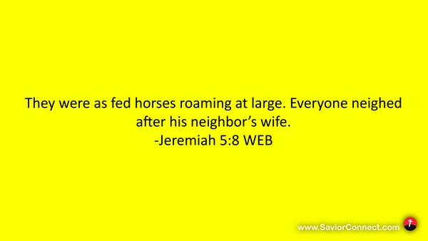 They were as fed horses roaming at large. Everyone neighed after his neighbor’s wife. -Jeremiah 5:8 WEB