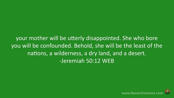 your mother will be utterly disappointed. She who bore you will be confounded. Behold, she will be the least of the nations, a wilderness, a dry land, and a desert. -Jeremiah 50:12 WEB
