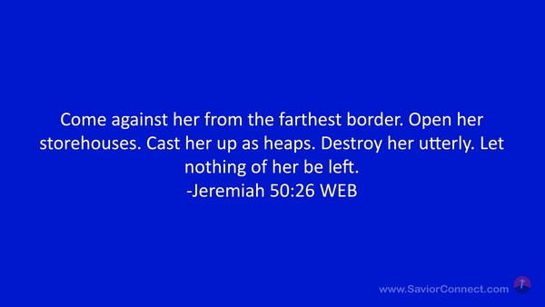 Come against her from the farthest border. Open her storehouses. Cast her up as heaps. Destroy her utterly. Let nothing of her be left. -Jeremiah 50:26 WEB