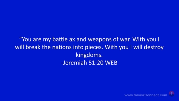 “You are my battle ax and weapons of war. With you I will break the nations into pieces. With you I will destroy kingdoms. -Jeremiah 51:20 WEB