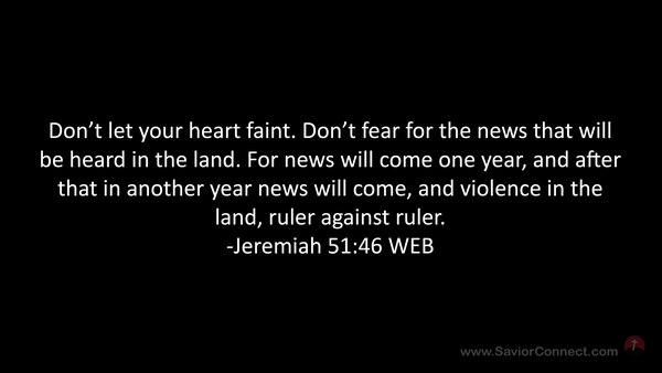 Don’t let your heart faint. Don’t fear for the news that will be heard in the land. For news will come one year, and after that in another year news will come, and violence in the land, ruler against ruler. -Jeremiah 51:46 WEB