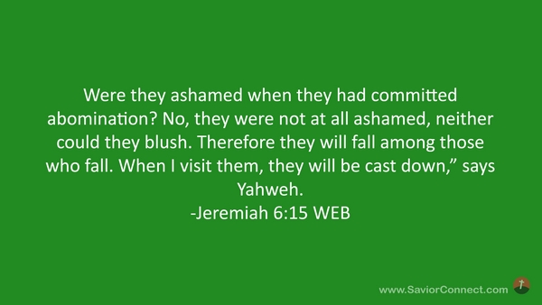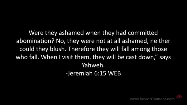 Were they ashamed when they had committed abomination? No, they were not at all ashamed, neither could they blush. Therefore they will fall among those who fall. When I visit them, they will be cast down,” says Yahweh. -Jeremiah 6:15 WEB