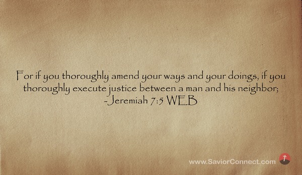 For if you thoroughly amend your ways and your doings, if you thoroughly execute justice between a man and his neighbor; -Jeremiah 7:5 WEB