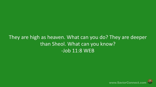 They are high as heaven. What can you do? They are deeper than Sheol. What can you know? -Job 11:8 WEB