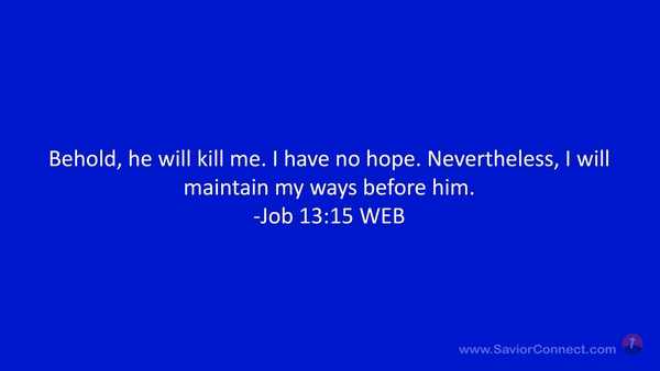 Behold, he will kill me. I have no hope. Nevertheless, I will maintain my ways before him. -Job 13:15 WEB