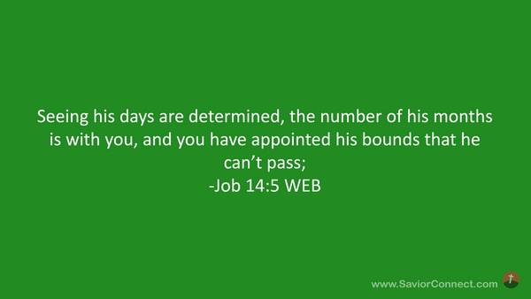 Seeing his days are determined, the number of his months is with you, and you have appointed his bounds that he can’t pass; -Job 14:5 WEB