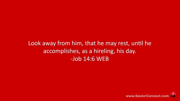 Look away from him, that he may rest, until he accomplishes, as a hireling, his day. -Job 14:6 WEB