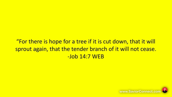 “For there is hope for a tree if it is cut down, that it will sprout again, that the tender branch of it will not cease. -Job 14:7 WEB
