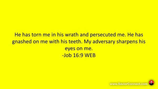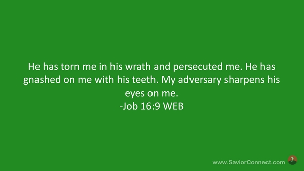 He has torn me in his wrath and persecuted me. He has gnashed on me with his teeth. My adversary sharpens his eyes on me. -Job 16:9 WEB