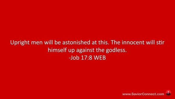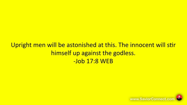 Upright men will be astonished at this. The innocent will stir himself up against the godless. -Job 17:8 WEB