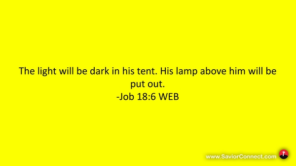 The light will be dark in his tent. His lamp above him will be put out. -Job 18:6 WEB