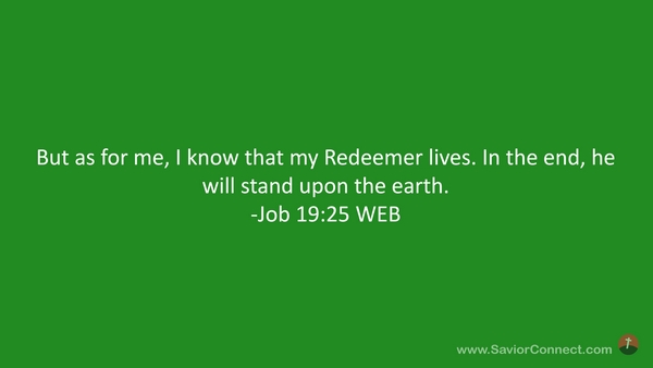 But as for me, I know that my Redeemer lives. In the end, he will stand upon the earth. -Job 19:25 WEB